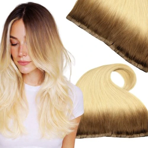 Tape-in-Haarverlängerungen halten in der Regel 6 bis 8 Wochen, abhängig vom Haarwachstum und der richtigen Pflege.